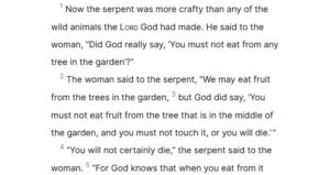 He said to the woman, “Did God really say, ‘You must not eat from any tree in the garden’?”