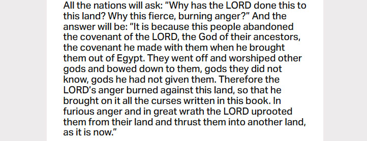 Special to CosmicTribune.com, April 21, 2026 Spiritual Food* Deuteronomy 29 24 All the nations will ask: “Why has the Lord done this to this land? Why this fierce,…